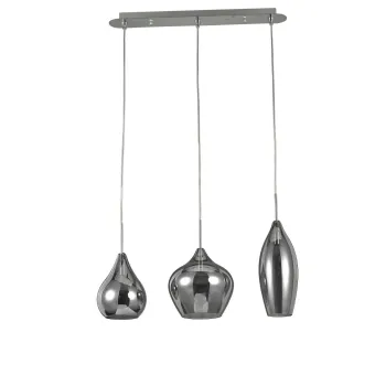 Metallgestell mit polierter Chromoberfläche. Diffusoren aus geblasenem Rauchglas. Die Aufhängung trägt drei E14-Lampenfassungen für Halogen-, Niedrigenergie- oder LED-Lampen. Glühbirnen ausgeschlossen.