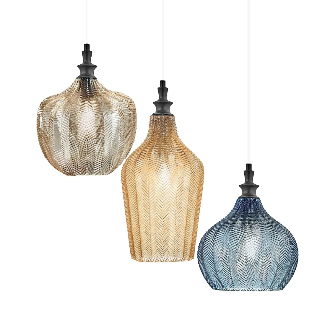 Extravaganter und schöner Design-Kronleuchter für Räume wie Schlafzimmer, Wohnzimmer, Arbeitszimmer ... Eine Hängelampe, die leuchtet, Licht streut und dem Raum einen Hauch von Farbe verleiht. Schöne Gläser in verschiedenen Formen, ideal für moderne oder sogar klassische Möbel für einen hellen und hellen Kontrast.