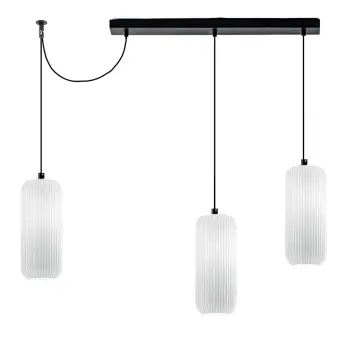 Moderne Aufhängung mit drei Lichtern, ausgestattet mit Dezentralisierung, die es Ihnen ermöglicht, das Licht nach Ihren Bedürfnissen zu bewegen, sowohl für die Funktionalität als auch für eine dekorative Note. Eine ideale Pendelleuchte für moderne und zeitgemäße Umgebungen, um Stützflächen wie Esstische, Halbinseln, Schreibtische oder in der Mitte des Raums zu beleuchten. Eine einfache Installation für unbegrenzte Lichtleistung.