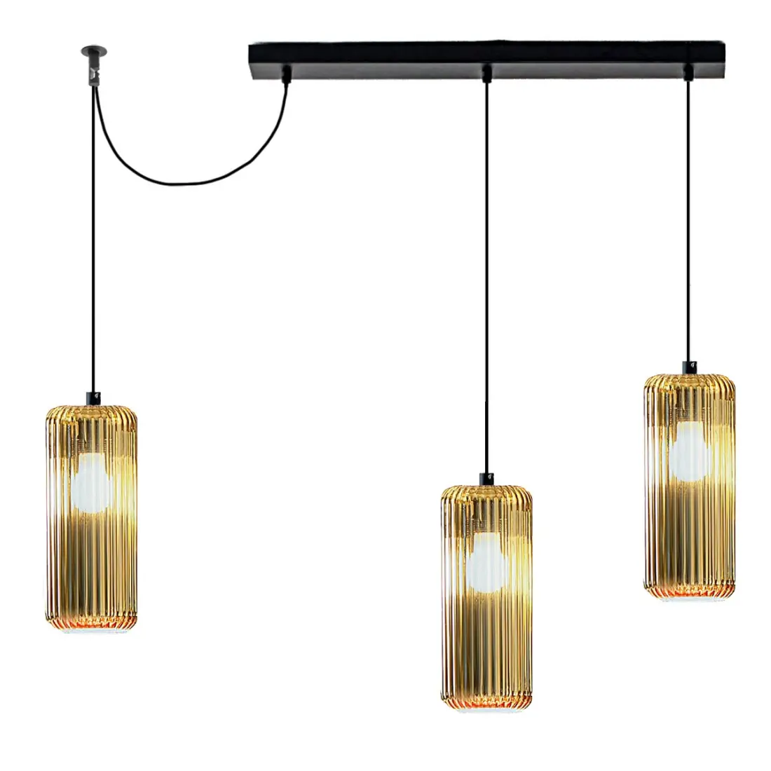Moderne Aufhängung mit drei Lichtern, ausgestattet mit Dezentralisierung, die es Ihnen ermöglicht, das Licht nach Ihren Bedürfnissen zu bewegen, sowohl für die Funktionalität als auch für eine dekorative Note. Eine ideale Pendelleuchte für moderne und zeitgemäße Umgebungen, um Stützflächen wie Esstische, Halbinseln, Schreibtische oder in der Mitte des Raums zu beleuchten. Eine einfache Installation für unbegrenzte Lichtleistung.