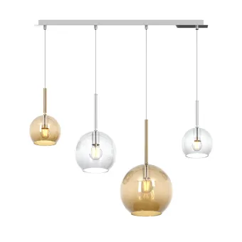 Die Deckenleuchte Future 1155 S4 eignet sich perfekt , um eine warme und einladende Atmosphäre im Zuhause zu schaffen. Der rechteckige Sockel aus poliertem Chrom verleiht ihm ein modernes und auffälliges Aussehen, während die bernsteinfarbenen und transparenten Gläser ein weiches und angenehmes Licht verbreiten. Die Lampe Future 1155 S4 bietet Platz für bis zu vier LED-Leuchtmittel mit E27-Fassung, die dank ihrer geringen Wärmeabgabe und langen Lebensdauer Ihre Stromrechnung senken. Dank ihrer gestaffelten Höhenform lässt sich diese Deckenleuchte optimal über einem Esstisch oder in einer Sitzecke platzieren, erhellt den Raum gleichmäßig und sorgt für eine angenehme Atmosphäre.