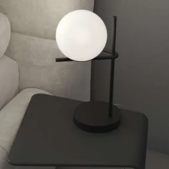 Die Tischleuchte HOLLY 1201 P NE vereint Eleganz und Modernität in perfekter Harmonie und besticht durch ihre schlichte Geometrie und die sorgfältig verarbeiteten Materialien. Ihr schwarz lackiertes Metallgestell verleiht ihr Stabilität und Stil, während der kugelförmige, säuregeätzte, mundgeblasene Glasdiffusor mit einem Durchmesser von 15 cm ein sanftes, umhüllendes Licht erzeugt und so in jedem Raum – vom Wohn- bis zum Esszimmer – eine warme und einladende Atmosphäre schafft.