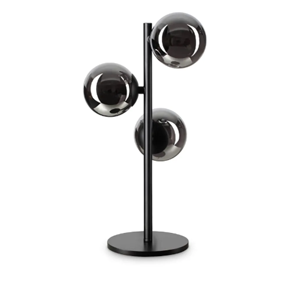 Die Leuchte PERLAGE 292465 in Schwarz mit Rauchglas ist die ideale Wahl für alle, die eine Leuchte mit starker visueller Wirkung suchen, die moderne Eleganz mit einer markanten Persönlichkeit vereint. Der schwarz lackierte Metallrahmen bildet einen raffinierten Kontrast zu den drei transparenten Rauchglaskugeln und verleiht der Lampe eine stimmungsvolle und einladende Lichtwirkung. PERLAGE 292465 ist perfekt für alle, die Wohnzimmer, Schlafzimmer, Eingangsbereiche und Geschäftsräume mit einem Hauch von modernem Stil bereichern und jeden Winkel in ein Design-Highlight verwandeln möchten. Ein Einrichtungsaccessoire, das alle Blicke auf sich zieht und die ganze Eleganz dunkler Oberflächen und Rauchglas verkörpert.