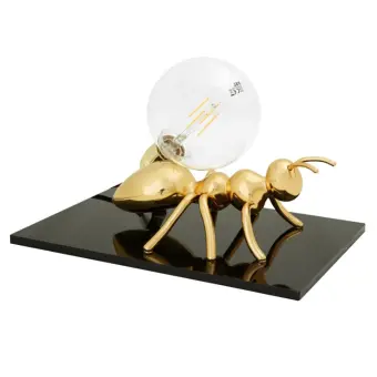 Tischlampe, Ameisenmotiv in Harz mit galvanischem Bad in: Silber, vergoldet, Kupfer und Bronze. Der abat-jour ist mit einer E27-Fassung für eine LED-Lampe ausgestattet. Glühbirne nicht enthalten.