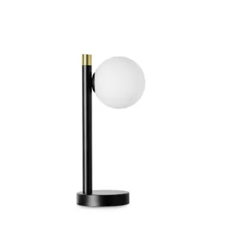 Die Tischleuchte POMI' 1744 105 zeichnet sich durch schlichte Eleganz aus. Dank seiner eher geringen Größe eignet es sich sehr gut zur begleitenden Beleuchtung. Ob im Schlafzimmer oder neben dem Sofa, es macht überall eine gute Figur und lässt sich dank des Schwarz-Weiß-Farbkontrasts relativ einfach in viele Einrichtungsstile integrieren. Der Leuchtenkörper besteht aus mundgeblasenem und weiß satiniertem Glas. Dank der Kugelform trifft die Lichtaustrittsfläche auf den gesamten Körper und wirft daher keine Schatten. Das milchige Glas sorgt dafür, dass das Licht blendfrei abgestrahlt wird. An der Oberseite des schwarzen Metallrahmens ist ein kleines, aufmunterndes Detail in Form einer kleinen Oberfläche aus gebürstetem Messing angebracht.