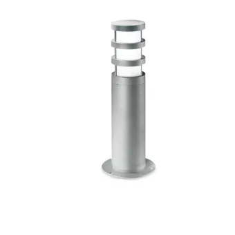 Poller mit grauer Aluminiumstruktur und satiniertem Glasdiffusor, glänzendes Finish.