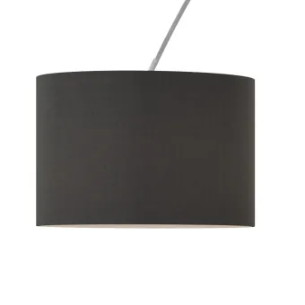 Zylindrischer Lampenschirm aus schwarzem oder weißem Stoff. Der schwarze Lampenschirm konzentriert das Licht mehr nach unten und indirekt nach oben; der weiße Lampenschirm hingegen streut den Lichtstrahl gleichmäßiger.