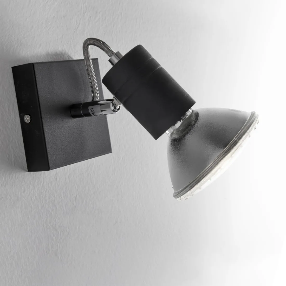 Der Spot ist mit einer Lampenfassung mit E27-Fassung für LED-Leuchtmittel ausgestattet.