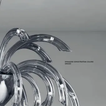 Metallausführung in Glanzchrom (K). Glasausführung in Sommerso Bernstein (AS), Milchweiß (BL), Kristall (CR) oder Rauch (FU).