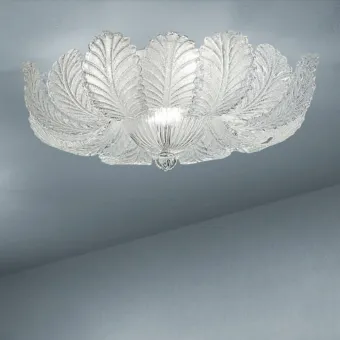Deckenleuchte Durchmesser 64 mit Muranoglas Blättern E27 und E14 Angriff