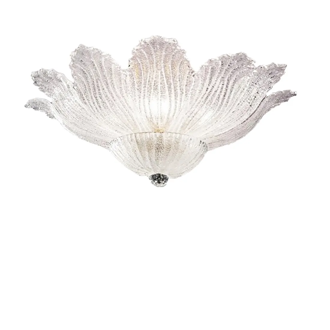 Klassische Deckenlampe oder Deckenlampe besteht aus 16 Kristallglasblättern, elegant und raffiniert für anspruchsvolle Umgebungen und raffinierte Möbel. Viele Blätter nebeneinander fallen nur durch die Brillanz auf, die sie in den Raum verbreiten. Ein spektakuläres Glas, das nie aus der Mode kommt und überall und in jedem Raum schmückt. 2519 PLG misst einen Durchmesser von 72cm und eine Ausladung von 30cm.