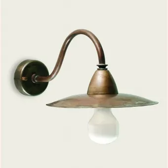 Ein Modell, das komplett mit Made in Italy-Produkten entworfen und hergestellt wurde. Die Wandleuchte kann sowohl außerhalb als auch innerhalb einer Wohnung montiert werden, beispielsweise in Kellern, Garagen, Durchgängen oder einfach zur Beleuchtung eines Tisches oder einer anderen an die Wand angrenzenden Fläche. Messingkorpus und handgefertigt im Alter. Runde Basis und besondere geschwungene Bewegung des Arms, die seine Form hervorhebt. Die Wandleuchte ist mit einer E27-Lampenfassung für Halogen-, Niedrigverbrauchs- oder LED-Lampen ausgestattet. Lampe nicht enthalten.