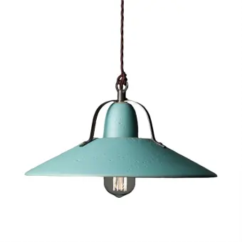 Korpus aus toskanischer Majolika in mattem Aqua (Farbe 88) und mattem Weiß (Farbe 57) ALS FOTO. Brauner, mit Seide geflochtener elektrischer Draht. Details aus natürlich brüniertem Metall.