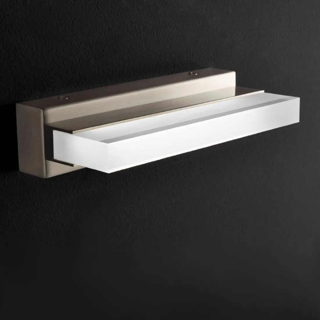 Wandleuchte schlicht in der Form und effizient in ihrer Lichtleistung. Eine Wandleuchte mit diffusem Licht, die für Umgebungen mit Lichtbedarf empfohlen wird, wie Spiegel, Küchen, Studios ...