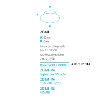 Rosetón de techo o pared para el artículo TAPE 2133 SM. Base para múltiples gotas de min. 2 hasta un máximo de 7.