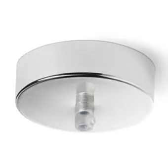 Rosetón redondo en metal cromo brillo, cromo cepillado, blanco o negro con orificio central para bajar la suspensión del techo.