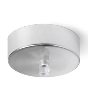 Rosetón redondo en metal cromo brillo, cromo cepillado, blanco o negro con orificio central para bajar la suspensión del techo.