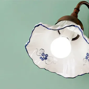 Clásico aplique de cerámica con una bonita placa festoneada que recuerda al platillo de antaño. Un modelo sencillo ideal para los que solo quieren la luz dirigida hacia abajo. Cerámica a elegir en diferentes colores.