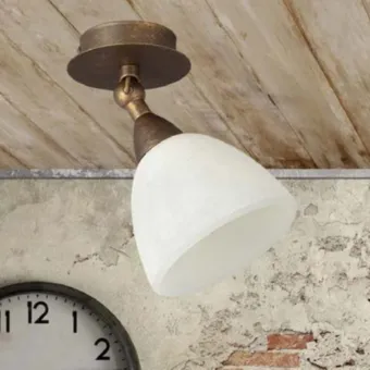 Aplique o plafón clásico con junta simple y campana de cristal envejecido. Una luz orientable difusa, de pequeño tamaño para personalizar en cualquier pared o techo. Un producto firmado Made in Italy