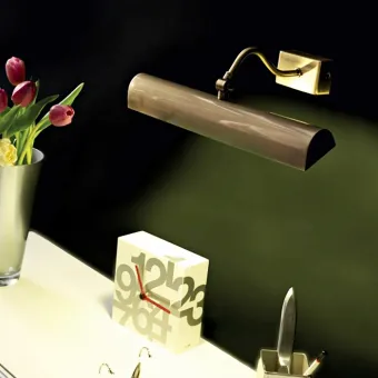 Aplique de pared de metal bruñido recomendado para espejos, cuadros, hornacinas... allí donde sea necesario iluminar puntos concretos de la pared hacia abajo. Sencillo y funcional gracias a la articulación en el cabezal que permite un mayor o menor haz de luz según tu necesidad.