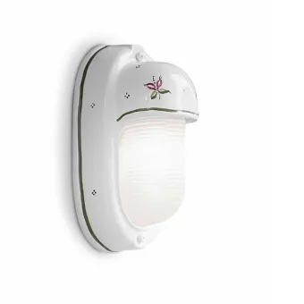 Lámpara de pared clásica en cerámica decorada a mano. Un aplique con la habitual forma evidente pero que se diferencia del techo de cerámica blanca decorado a mano y que difunde la luz hacia abajo. Un producto Made in Italy.