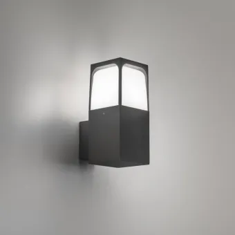 Aplique de exterior GES2030 compuesto por una estructura de aluminio inyectado pintado GRIS ANTRACITA y un difusor de policarbonato opal. La lámpara tiene unas líneas esenciales que permiten combinarla fácilmente con cualquier tipo de ambiente. Indicado para iluminar y cambiar el ambiente de la zona exterior de forma agradable. Con su diseño moderno que recuerda a un farol, esta lámpara no sólo crea una iluminación ambiental, sino que también sirve como un elegante elemento decorativo en el exterior.
