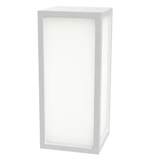 KCOLB , estructura realizada en aluminio blanco que le da un aspecto moderno y sofisticado, el difusor es de plástico satinado, diseñado para distribuir la luz de manera uniforme, creando una atmósfera cálida y envolvente. La lámpara KCOLB es una elegante luminaria rectangular, diseñada para ofrecer una luz difusa y acogedora en cualquier ambiente, ideal para iluminar fachadas exteriores.