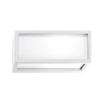 Accesorio de pared. Cuerpo en aluminio fundido a presión en color blanco. Pantalla difusora de metacrilato opal. Fuente LED integrada de alta eficiencia. Para efectos de luz difusa. Driver electrónico integrado en la luminaria. Grado de protección IP54 (protegido contra el polvo - protegido contra salpicaduras de agua), por lo que también es adecuado para entornos al aire libre.