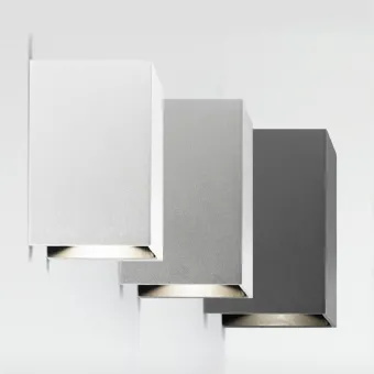 Aplique moderno con forma geométrica y original en su haz de luz orientable. Dos LED up-down que iluminan y crean un espectacular juego de luces en la fachada de la casa gracias a las aletas orientables que permiten atenuar gradualmente los haces de luz emitidos y personalizar el efecto de iluminación en la pared.