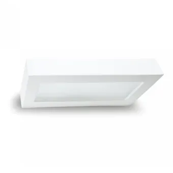 Aplique rectangular de yeso (para pintar con acuarelas) con cristal esmerilado en la parte inferior, doble haz de luz arriba y abajo en la pared. Una luz bien distribuida y agradable a la vista. Una forma geométrica sencilla pero con un gran efecto arquitectónico. Hecho en Italia.