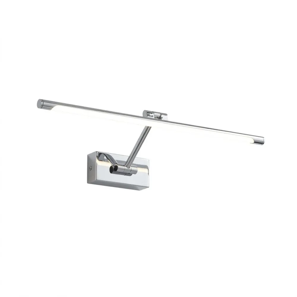 Aplique de pared LED moderno y regulable, modelo GAP442C , compuesto por una estructura metálica cromada y un difusor sintético. Módulo LED y transformador incluidos. Este aplique incorpora una placa LED de 8 W que produce 473 lúmenes, emitiendo una fantástica luz cálida (3000 K). Ideal para iluminar cuadros, espejos, etc.