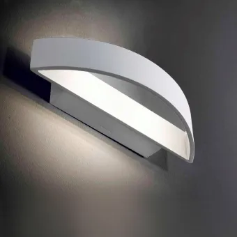 Aplique de pared en aluminio blanco con luz indirecta. Un reflejo de luz en la pared que crea un ambiente agradable para adaptar en zonas de tránsito o para un descanso en agradable compañía.