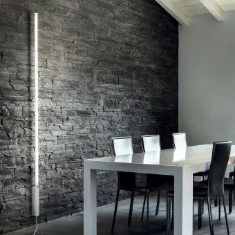 El aplique largo está equipado con un módulo LED (unidad de medida del flujo luminoso) de 27W y 1900 lm con tonos de luz cálidos (3000°K), bajo pedido también a 2700°K o 4000°K. Clase energética A++
