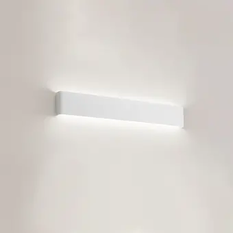 Aplique de pared de metal pintado en blanco mate con doble salida de luz superior e inferior. Una lámpara de pared moderna, perfecta para entradas, salones o pasillos, que proporciona una iluminación indirecta y discreta.