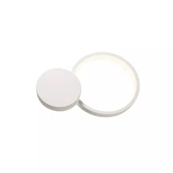 Esta versátil solución de iluminación funciona tanto como aplique de pared como lámpara de techo interior, destacando por su elegante diseño escultural. Cuenta con una base redonda y un anillo lateral que emite una luz indirecta que envuelve la estancia con un efecto suave y sin deslumbramiento.