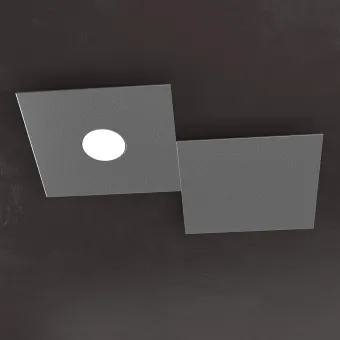 Colección de lámparas cuadradas formada por placas de metal pintadas en diferentes acabados, BLANCO, GRIS, ARENA, MARRÓN, GRIS, ANTRACITA, HOJA DE PLATA, HOJA DE ORO o HOJA DE COBRE. La lámpara de techo tiene un portalámparas con portalámparas GX53 para una bombilla LED de 9W máx. excluida.