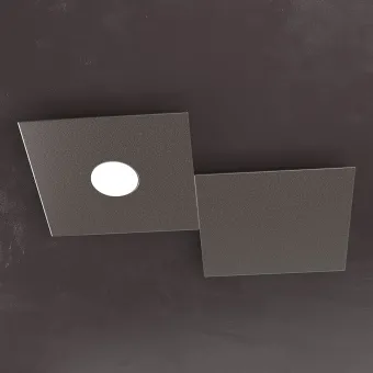 Colección de lámparas cuadradas formada por placas de metal pintadas en diferentes acabados, BLANCO, GRIS, ARENA, MARRÓN, GRIS, ANTRACITA, HOJA DE PLATA, HOJA DE ORO o HOJA DE COBRE. La lámpara de techo tiene un portalámparas con portalámparas GX53 para una bombilla LED de 9W máx. excluida.