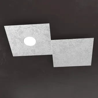 Colección de lámparas cuadradas formada por placas de metal pintadas en diferentes acabados, BLANCO, GRIS, ARENA, MARRÓN, GRIS, ANTRACITA, HOJA DE PLATA, HOJA DE ORO o HOJA DE COBRE. La lámpara de techo tiene un portalámparas con portalámparas GX53 para una bombilla LED de 9W máx. excluida.