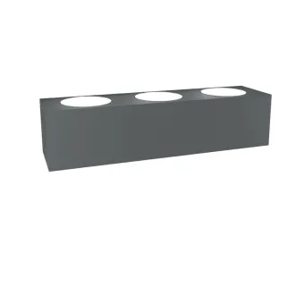 Placa metálica pintada en diferentes acabados monocolor en blanco, gris, antracita o arena. El aplique monta seis portalámparas (3 arriba y 3 abajo) casquillo GX53 para bombillas led de 9W máx. Bombillas no incluidas.
