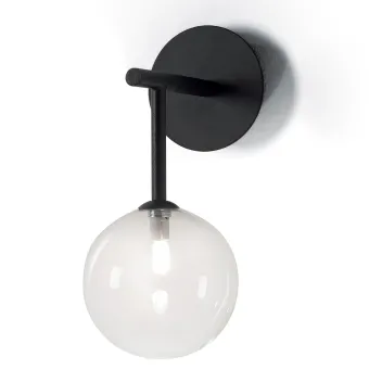 Estructura de metal pintado negro mate. Difusor de esfera de cristal transparente de 12 centímetros de diámetro. El aplique está equipado con un portalámparas G9 para la bombilla LED no incluida.