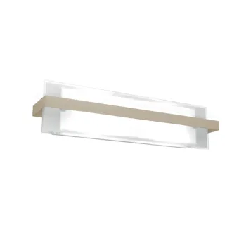 Aplique de pared moderno de cristal con bandas metálicas decorativas y de colores. Un aplique rectangular de luz difusa que se puede colocar en cualquier estancia y para cualquier uso.