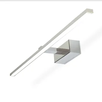 Aplique de línea geométrica, moderna y con fuente LED. Un aplique de pared imprescindible en metal blanco o cromo pulido para colocar encima de espejos, cuadros, hornacinas... donde quieras destacar e iluminar los objetos que se encuentran debajo.