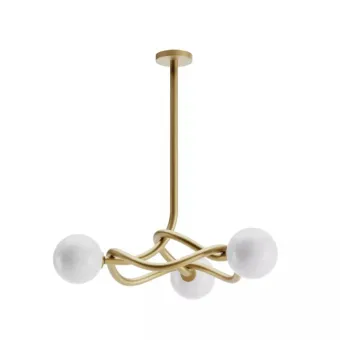 La lámpara de araña CONFUSIO es un elemento de decoración elegante y refinado para iluminar y decorar el hogar o un local comercial. Las esferas de cristal opalino difunden una luz suave y uniforme, creando una atmósfera acogedora y evocadora. La estructura anudada confiere a la lámpara un diseño moderno y decididamente original. CONFUSIO es ideal para iluminar estancias de tamaño medio como salones, comedores o dormitorios. CONFUSIO añade un toque de elegancia y estilo al lugar.