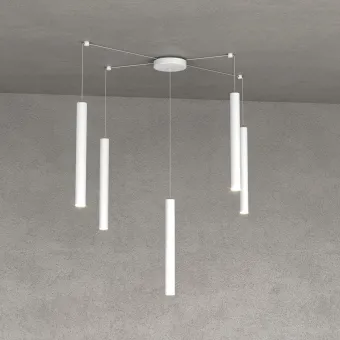 La lámpara de araña ROUND TUBE 1174 S5 está formada por cinco cilindros metálicos, cada uno de los cuales se puede elegir en diferentes acabados. Estos acabados permiten adaptar la lámpara a diferentes estilos de decoración, desde el contemporáneo hasta el vintage. Los cilindros ROUND TUBE 1174 S5 se pueden instalar a diferentes alturas, creando un efecto visual dinámico y moderno. ROUND TUBE 1174 S5 es ideal para crear grupos de luz o para trasladar la luz a puntos donde se necesita luz.