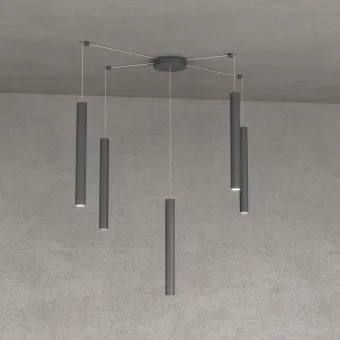 La lámpara de araña ROUND TUBE 1174 S5 está formada por cinco cilindros metálicos, cada uno de los cuales se puede elegir en diferentes acabados. Estos acabados permiten adaptar la lámpara a diferentes estilos de decoración, desde el contemporáneo hasta el vintage. Los cilindros ROUND TUBE 1174 S5 se pueden instalar a diferentes alturas, creando un efecto visual dinámico y moderno. ROUND TUBE 1174 S5 es ideal para crear grupos de luz o para trasladar la luz a puntos donde se necesita luz.