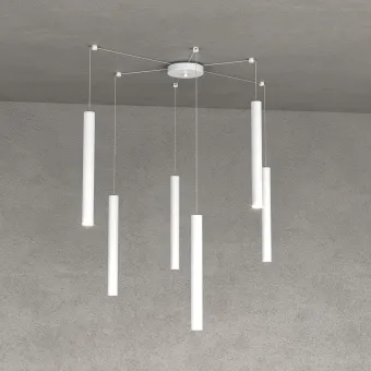 ROUND TUBE 1174 S6 es un mueble que combina funcionalidad y diseño moderno. Los cilindros están diseñados para proyectar la luz hacia abajo. Este tipo de iluminación directa es ideal para crear ambientes acogedores y funcionales, perfectos para ambientes como salones, comedores o cocinas.