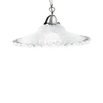 2577 SM es una lámpara de araña clásica pero elegante, una suspensión compuesta por una placa de vidrio festoneado que emite una luz DIFUSA pero dirigida principalmente hacia abajo, iluminando un amplio haz de forma uniforme. Una forma plana pero ondulada perfecta para instalar en la cocina, comedor, etc... Ideal para iluminar una mesa o superficie de trabajo.