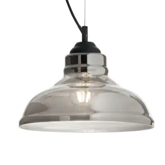 Suspensión en vidrio soplado transparente o ahumado con un gusto retro .. una calatina simple que difunde la luz y al mismo tiempo decora ambientes clásicos y rústicos con un toque de ligereza. Un downlight para ser instalado también en versión múltiple sobre mesas, penínsulas y escritorios.