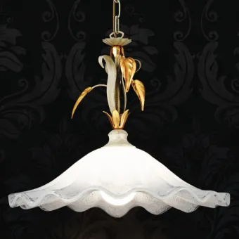 Suspensión clásica que destaca por su marco floral e ilumina uniformemente la estancia. Una lámpara con estilo que da un toque de color al ambiente. Un producto Made in Italy.