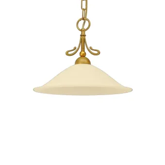 La estructura de la suspensión 2383 1S está pintada en latón flameado con detalles en oro brillo. El vidrio en la excavación de crema.